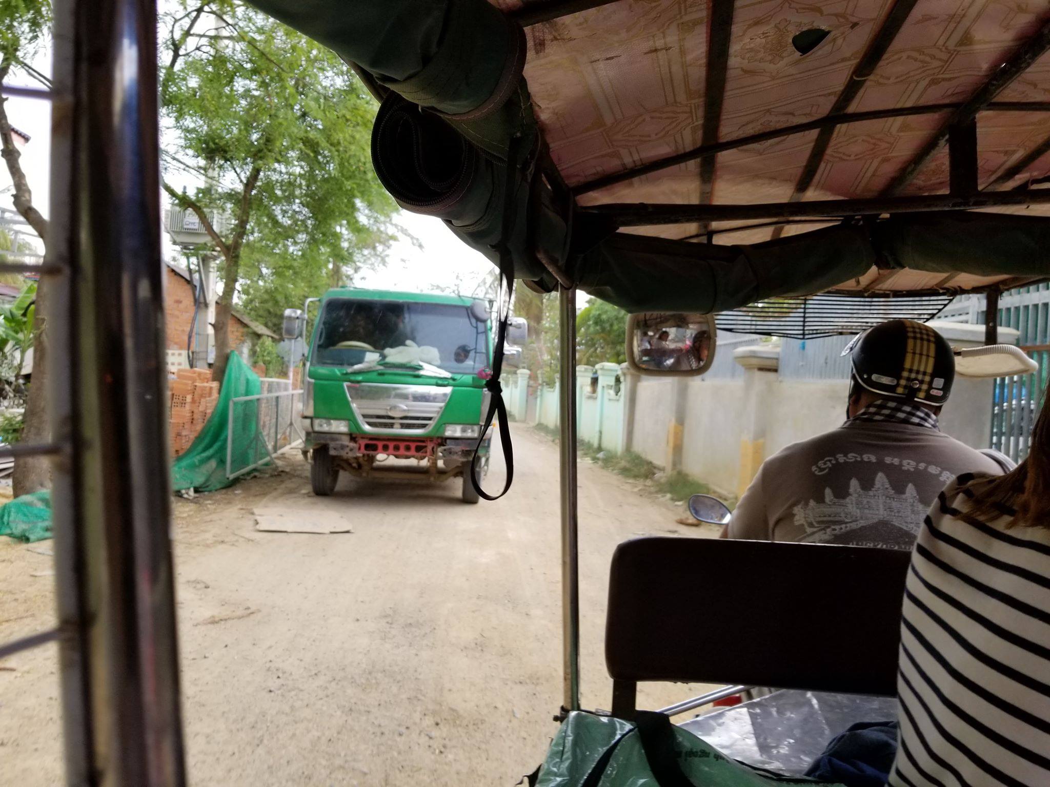 首都プノンペンから約30km離れたカンダール州Tonie Bati村にある道場は、日本の留学経験もある韓国人宣教師Hong Min Seo先生(以下、ホンミン先生)が小学生から大人までの幅広い層を一人で指導しています。この村に行くためには、大渋滞するプノンペン市内、途中舗装がされていない道路に揺られて、カンボジアの庶民の足であるトゥクトゥクで約1時間半かかり、ホンミン先生に紹介頂いたドライバーでも往復30米ドルかかります。